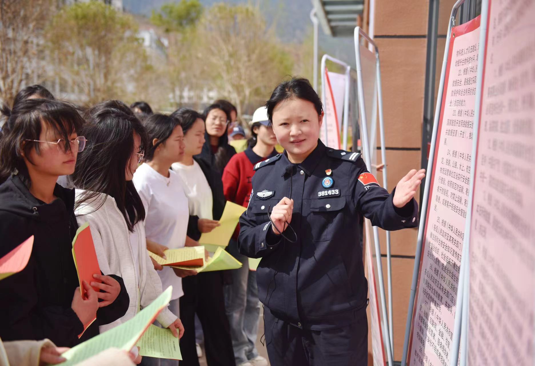 活动中,机关第七党支部全体成员和丽江市边防检查站的警官们通过发放传单、讲解国家安全法规法条、开展现场问答等方式,为我校学生进行了一场丰富、生动的国家安全知识普及、普法活动。