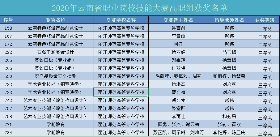 2020年云南省职业院校技能大赛于2020年1月5日-9日分别在云南12所高等职业院校和5所中等职业学校举行,大赛共设置高职组51个竞赛项目,中职组14个大类80个竞赛项目。我校共选派组织20支队伍参赛,取得了2个一等奖、6个二等奖和6个三等奖的好成绩。