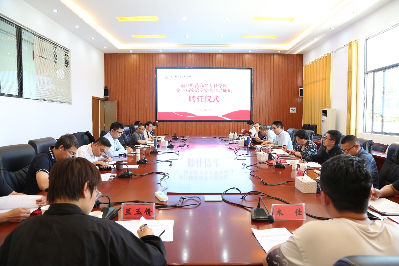 2023年6月26日14:30,丽江师范高等专科学举行第一届实验室安全督导组聘任仪式在校务管理中心第三会议室举行。丽江师范高等专科学校党委副书记、校长陈本辉、副校长朱桂香、副校长张兰胜,各学院院长、第一届实验室安全督导组成员、教务处相关人员参加仪式。