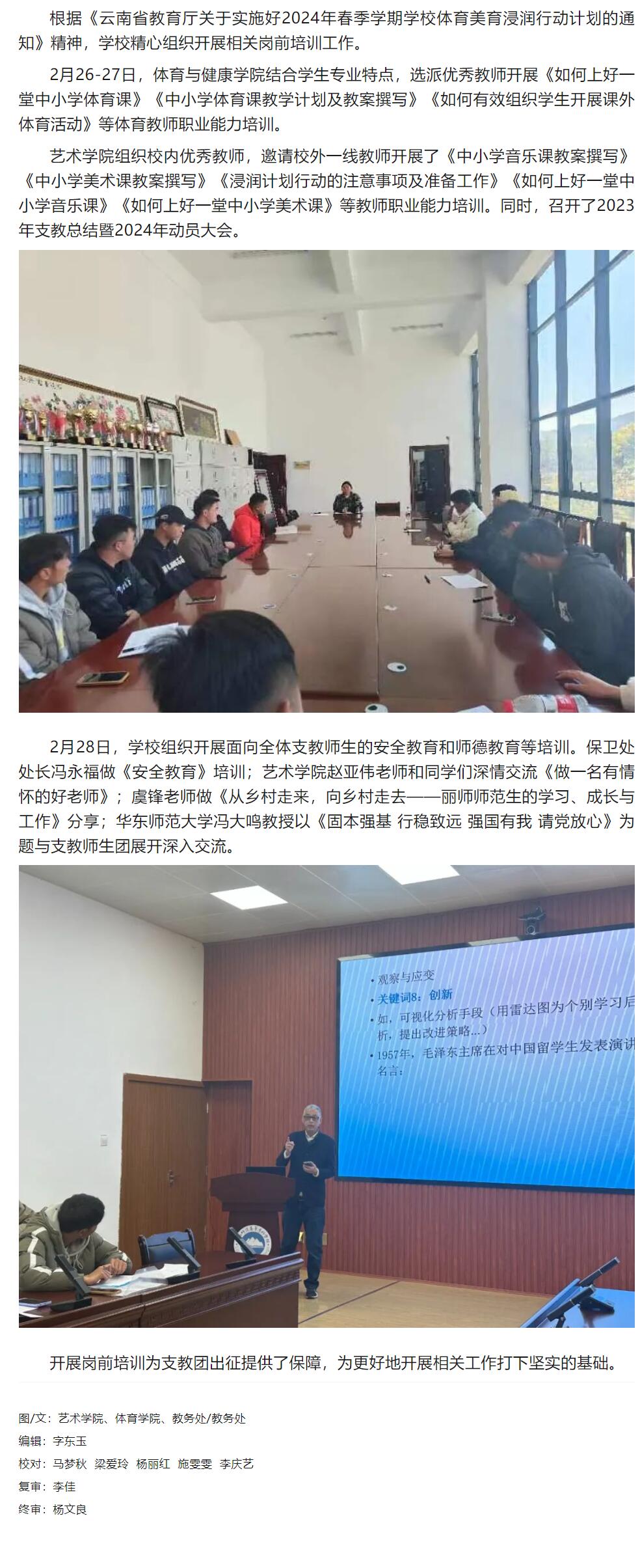 学校组织开展体育美育浸润行动计划第二轮支教学生岗前培训工作