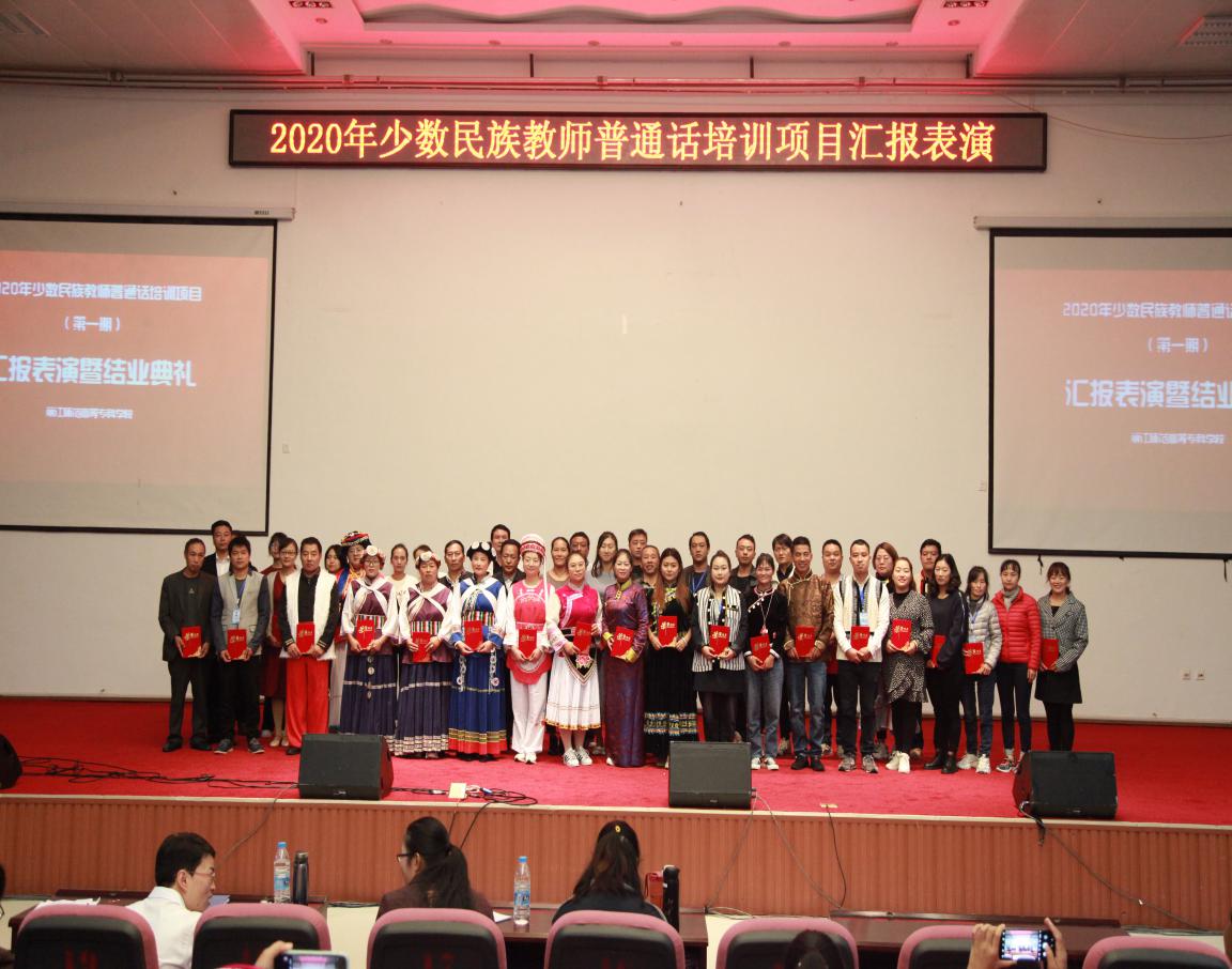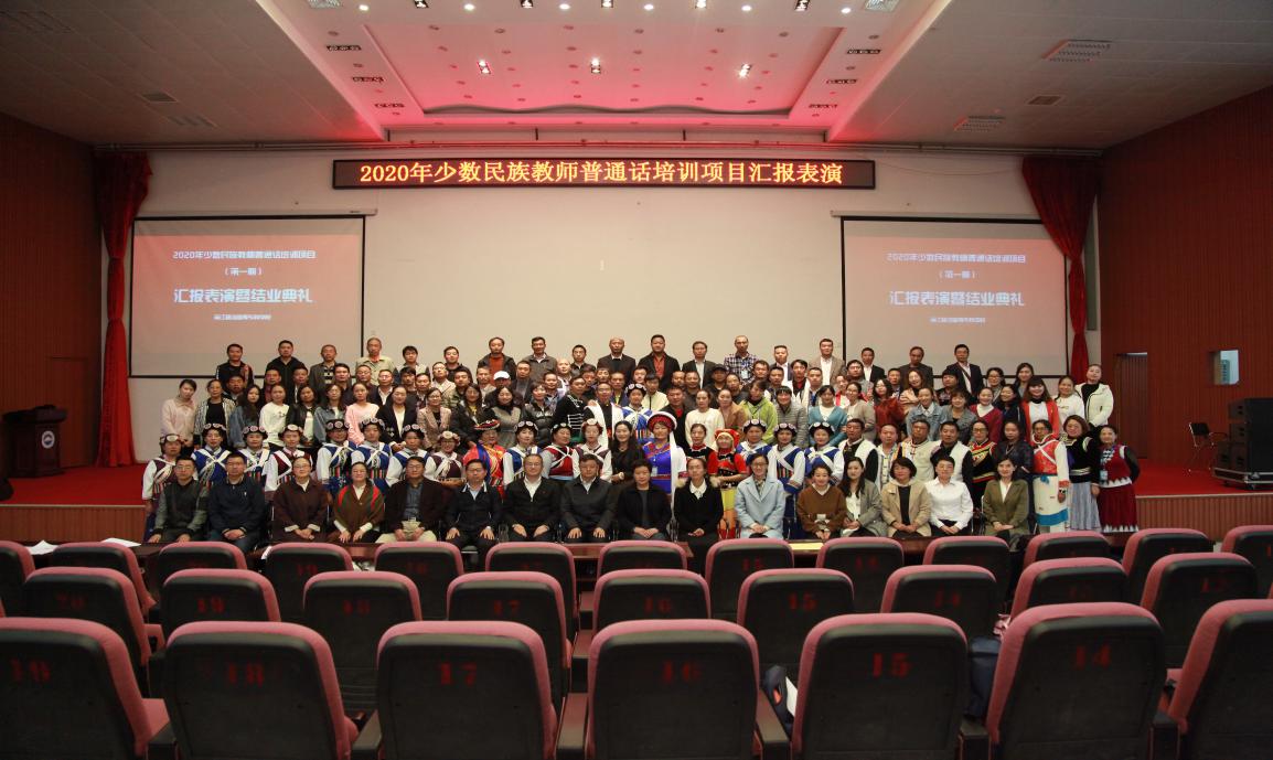 10月17日上午,由我校承办的2020年少数民族教师普通话培训项目(第一期)汇报表演暨结业典礼在校图书馆报告厅举行。我校继续教育学院院长高培仁,本次培训首席专家、授课教师、培训班班主任以及来自大理州、怒江州、迪庆州、丽江市的200名学员以及我校师生参加结业典礼,典礼由陈永主持。