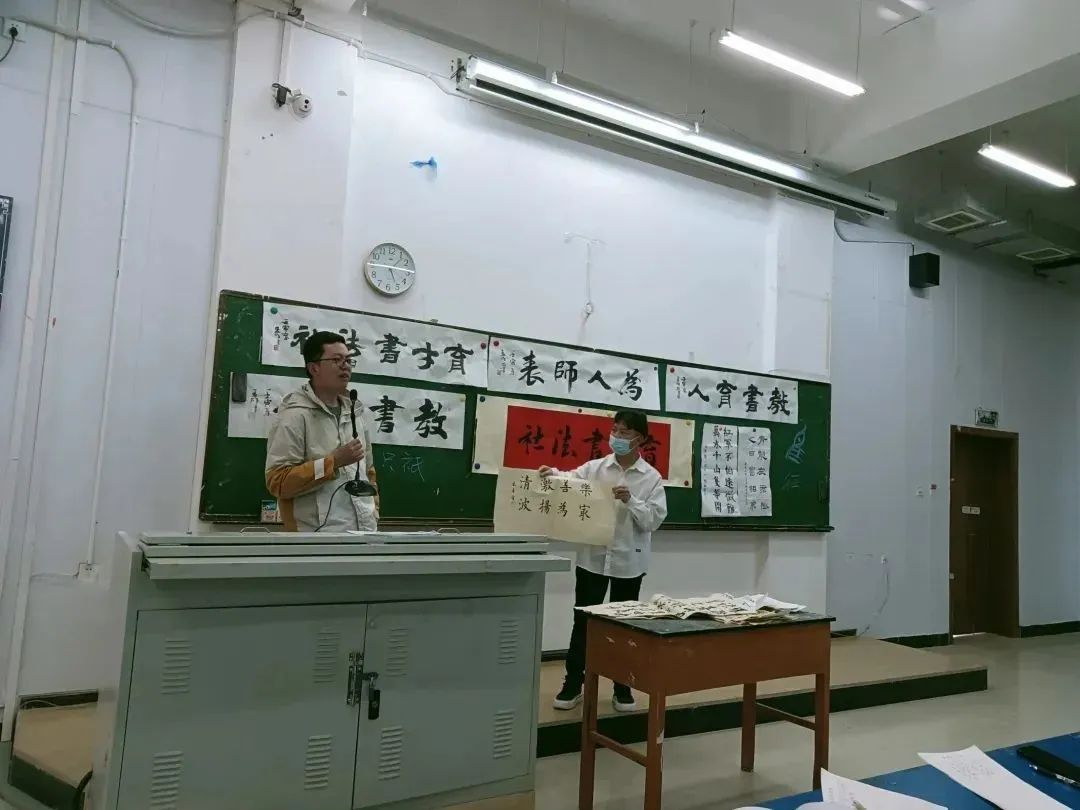 1.社团指导教师书法知识讲座及进行现场书法作品交流会;